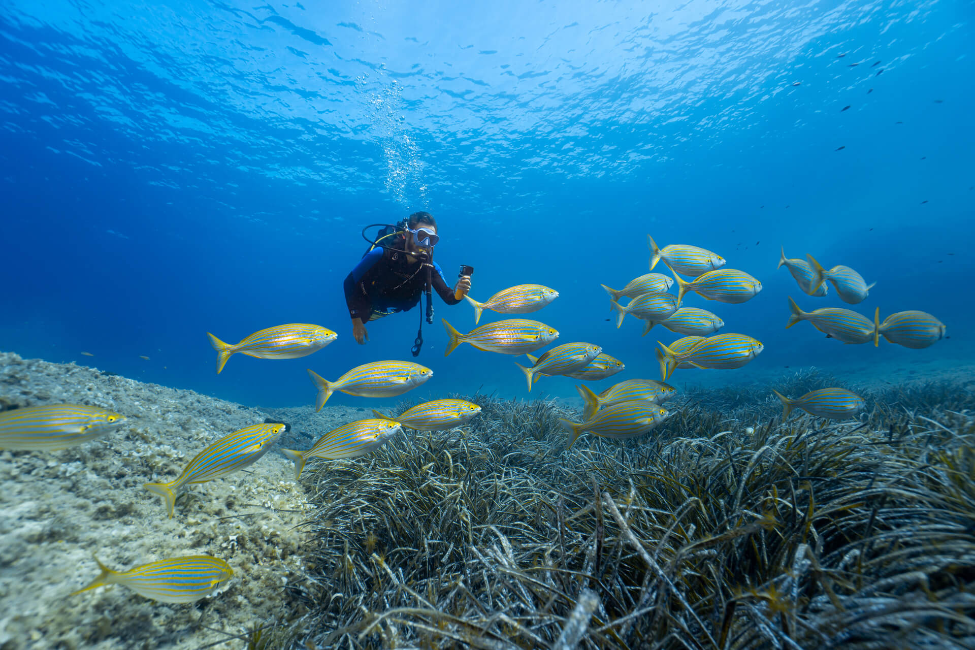 Sumérgete en un universo submarino y explora el lado menos conocido de la isla. Durante unas horas, convivirás con cientos de especies marinas y descubrirás el tesoro más valioso de las Islas Baleares: la posidonia.